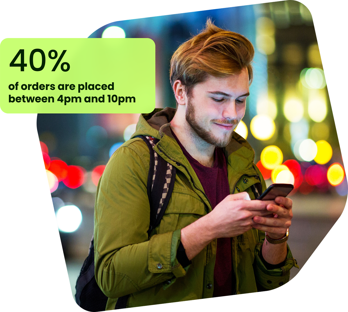 Get started today40% of orders are placed between 4 pm and 10 pm.3